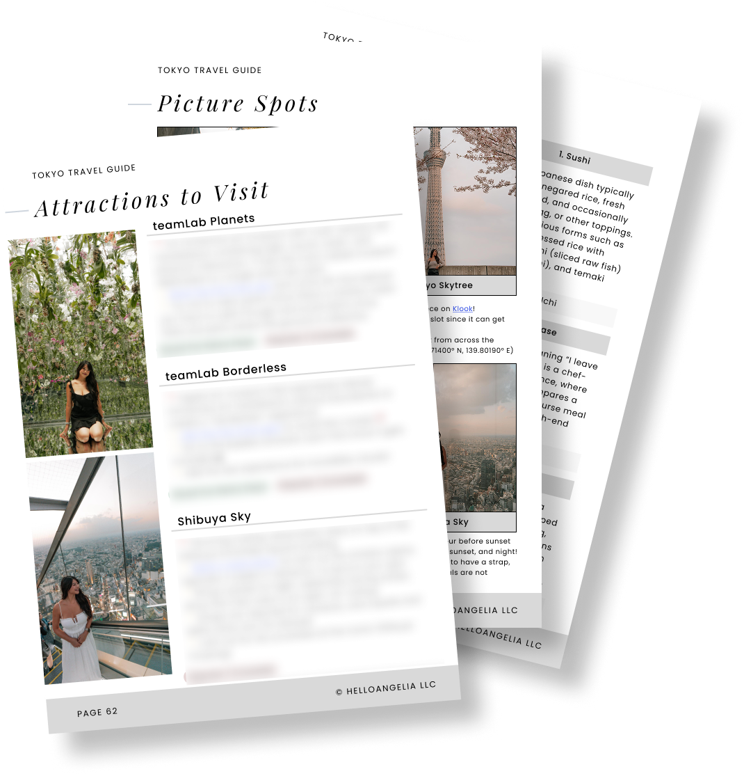 Unlock the best of Tokyo with our comprehensive guide. Learn where to find the city's best attractions and picturesque photo spots. Enjoy the delicious local cuisine with recommendations to top-notch restaurants, popular street food and stalls to try, and Japanese dishes to try. Gain valuable insights into getting around with the transportation services and learn important tips to ensure a seamless visit to the city. Take the stress out of planning with our thoughtfully created 7-day itinerary so you can make the most of your time in Tokyo!
